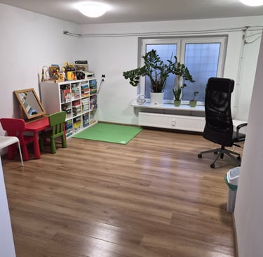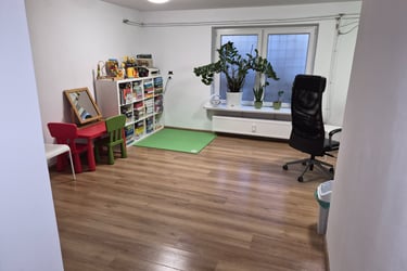 Wnętrze gabinetu jest jasne, estetyczne i dostosowane do potrzeb najmłodszych.